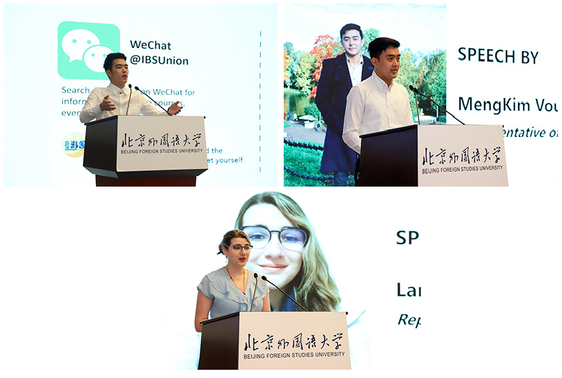 VOU MENGKIM, representative of senior student, shared his personal growth experience and memorable moments at BFSU, encouraging new students to take advantage of the university resources and continuously improve themselves. MACKAY LARA JOAN, representative of freshmen, expressed sincere gratitude for the warm care shown by IBS.BFSU and hope to become an outstanding cultural ambassador through the journey of studying at IBS.BFSU.