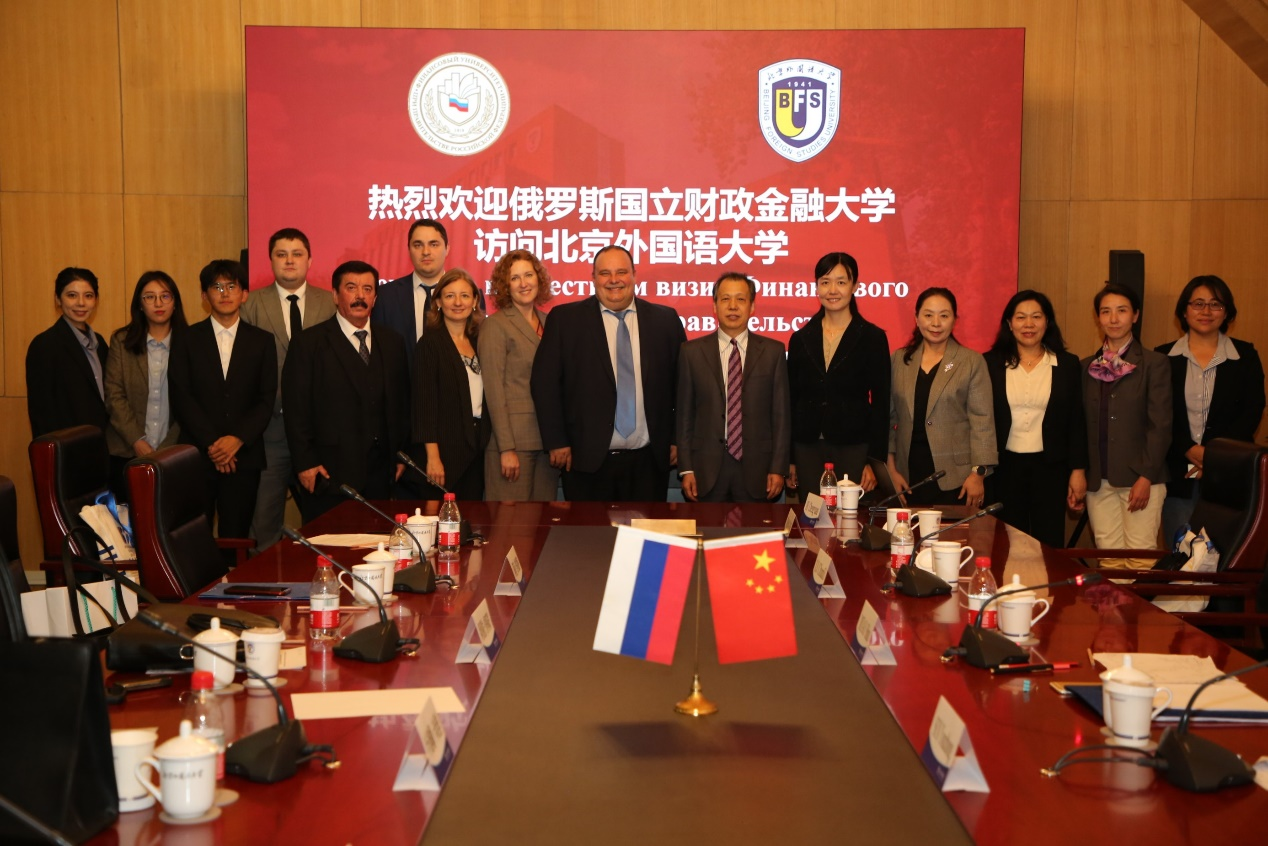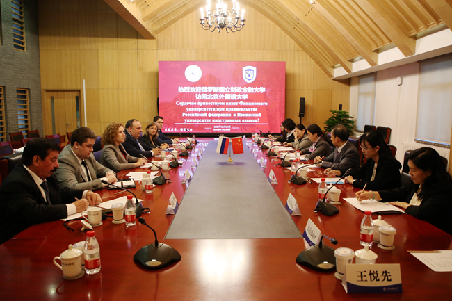 俄罗斯国立财政金融大学国际经济关系公司主管谢尔盖·沙雷、国际合作处处长莉莉亚·普里霍德科、执行办公室主任基里尔·克罗什科夫,北外国际交流与合作处处长和静,俄语公司经理戴桂菊、副经理苗澍等参加会见。