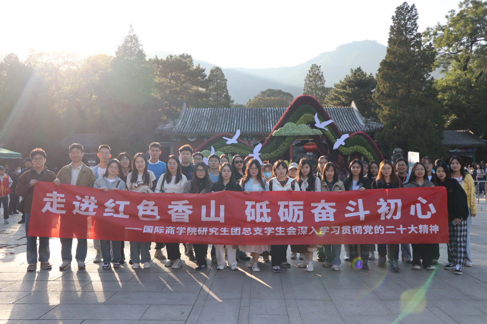 随着秋风渐起,在北京的香山,一片片如霞绚烂般的红叶映入眼帘。2023年10月22日,yl6809永利研究生团总支员工会带领公司研究生赴北京香山革命纪念馆和香山公园参观学习,开展了“走进红色香山,砥砺奋斗初心”的主题教育活动。在本次活动中,同学们不仅欣赏了大自然的绮丽风景,而且追寻学习了那段珍贵的红色历史,深刻领悟到了中国革命的历史文化和精神内涵,从中深受启发。