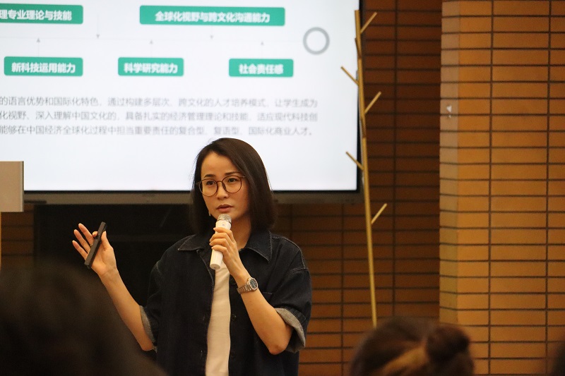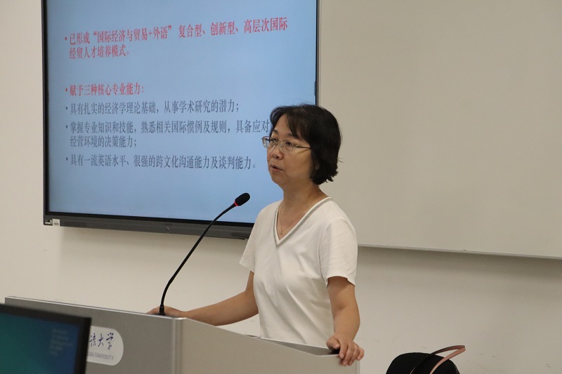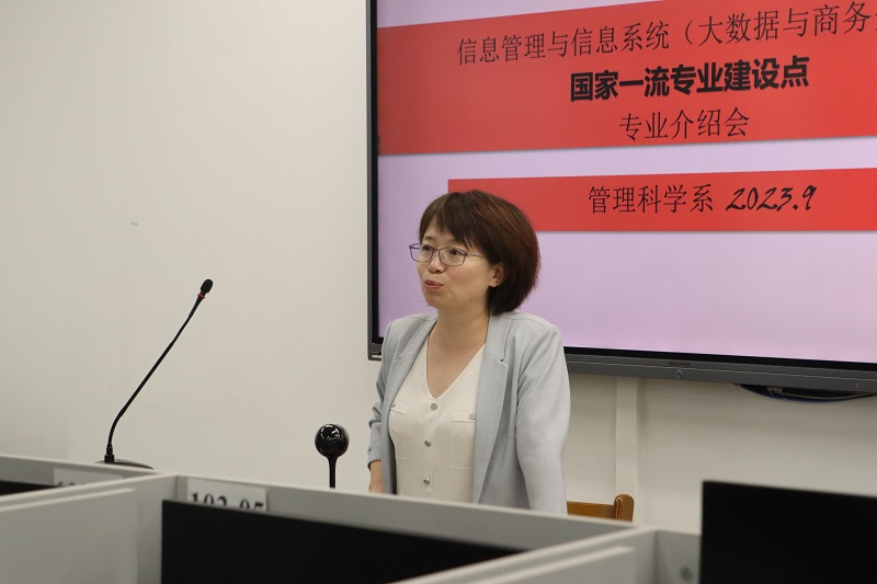 会议第二部分,由各位系主任带领各自专业的新生进入分会场。何蓉、任康钰、范静、宋衍蘅、陈茵和王敏等老师分别为国际经济与贸易、金融学、信息管理与信息系统、工商管理大类等专业新生介绍了本专业的详细情况及未来规划,邵明星、姚项悫老师为北理和央财联培班级介绍该项目的特殊培养方案和其余相关事宜。