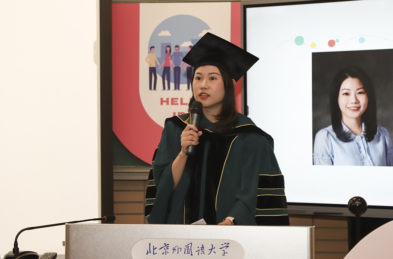仪式伊始,经理牛华勇代表公司对全体毕业生们和家属表示热烈祝贺与欢迎。他在致辞中表示,北外国商始终是所有毕业生们的大家庭,过去的三年,因为新冠疫情的影响,部分同学未能如愿参与线下的毕业典礼和学位授予仪式。为弥补这一遗憾,也为员工们再次团聚,重回校园,公司特此为大家筹备了这场满满仪式感的活动。他希望同学们能够不断拓展全球视野、提升专业本领,在未来的工作与生活中继续秉持国商精神,持续关注公司的建设与发展,运用在校期间学习到的知识与技能积极应对人生的新挑战,做新时代的引领者,做中国故事的讲述者。