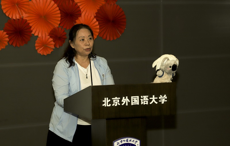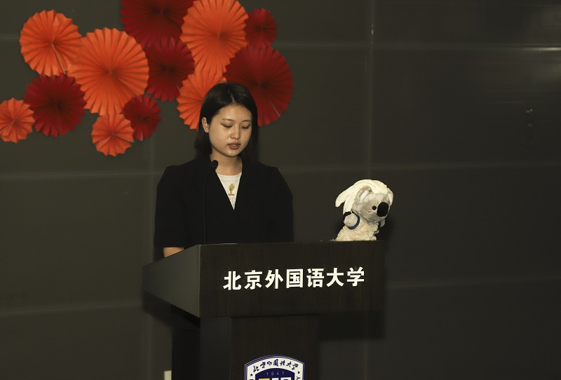 优秀员工代表乔佩媛和国际部部长田一麟发言,分享了两年来在北外的学习和生活,表达了对公司领导和老师的感激以及对北外学习生活的不舍。