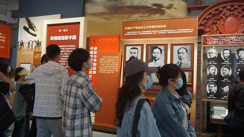 展览共分为“共同缔造新中国”“团结建设新社会”“携手奋斗繁荣路”“同心奋进新时代”四个部分、10个展厅,生动地展现了“中华一脉,同心筑梦”的伟大主题。旧址展览馆是蒙藏公司600余年历史的“浓缩”,展厅里陈列着许多历史实物、文献资料,它们将中华民族的过去、现在与未来紧密串联在一起,把民族团结奋进的故事讲述给了每一位参观者。在参观过程中,党员同志们时常驻足感悟,一张张真实的照片、一篇篇深刻的文章,浮现出了一段中国全景历史中浓缩民族复兴的艰辛历程,让大家重温起了那段少数民族青年的“觉醒岁月”。