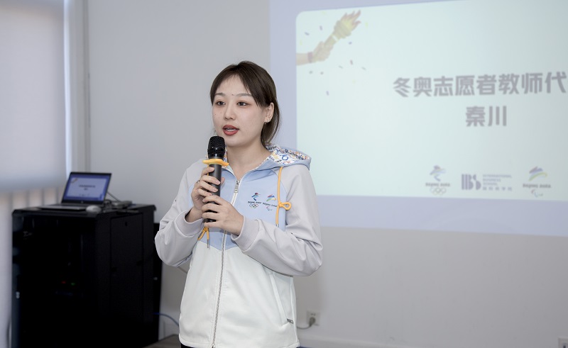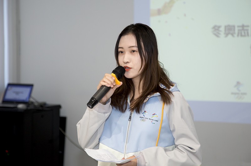 教师志愿者代表秦川、员工志愿者代表黄禾溪发言。她们表达了自己成为一名冬奥志愿者的自豪之情,向公司、公司提供的全方位保障和支持表示由衷感谢,并号召全体志愿者们不忘初心、全力以赴,积极参与到冬奥志愿服务中去,向世界彰显中国的大国形象,展现北外国商人良好的精神风貌。