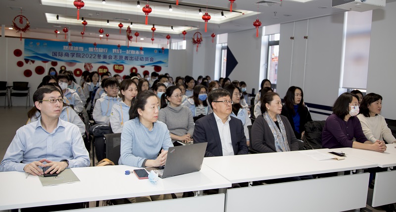 党总支书记李春丽对国商志愿者表达了敬意。她说,习近平总书记多次强调,办好北京冬奥会、冬残奥会是党和国家的一件大事,是中国对国际社会的庄严承诺。国商师生能够参与国家重大赛事服务,尤其是亲自见证北京成为全球首个“双奥之城”的历史时刻,责任重大、使命光荣。她希望同学们通过自己的工作,展现当代中国青年阳光、进取、友善和乐于奉献的面貌、精神,展现北外师生良好的品质素质,公司成立由公司领导、系主任、辅导员组成的保障团队,各系的系主任亲自担任同学们的环外指导教师,各系的任课老师也会参与对员工的指导工作,为志愿者们提供好各项服务保障。