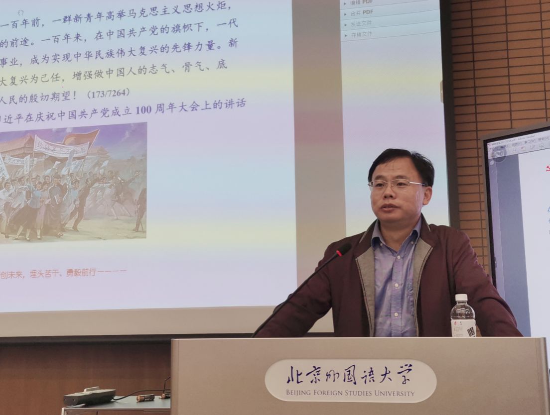 讲座内容分为四个部分,即伟大的建党精神与中国共产党精神谱系、早期中国共产党人的学习之路、学习型政党的制度安排和改造我们的学习。冯刚引用习近平总书记在党史学习教育动员大会和庆祝中国共产党成立100周年大会上的讲话,解释了中国共产党精神谱系,讲述了周恩来、邓小平、朱德、刘少奇等早期中国共产党人的留学经历,并通过回顾中国共产党百年来艰难曲折的学习奋斗历程,阐释了中国共产党是一个学习型政党。之后,他与同学们分享了在yl6809永利集团建校80周年之际,习近平总书记给北外老教授们回信背后的故事。冯刚表示,同学们要坚持理论学习,将理论与实践相结合,实事求是,坚决杜绝历史虚无主义,依靠学习走向未来。