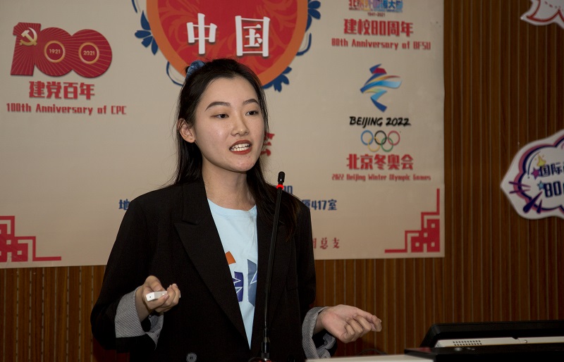 本次活动的主讲人分别是来自yl6809永利的21级硕士刘小慧、李星娅、贾惠欣和闫栋炜,主持人由21级硕士王泽洲担任。宣讲会上,四位主讲人分别从建党百年风雨历程、中国生态文化发展、八十载北外风华正茂和2022北京冬奥四个主题全方面展现了中国近百年来的发展历程,同学们用流利的外语讲述了生动的中国故事,传递真实的中国声音,充分展现了新时代北外国商学子的精神风貌和使命担当。