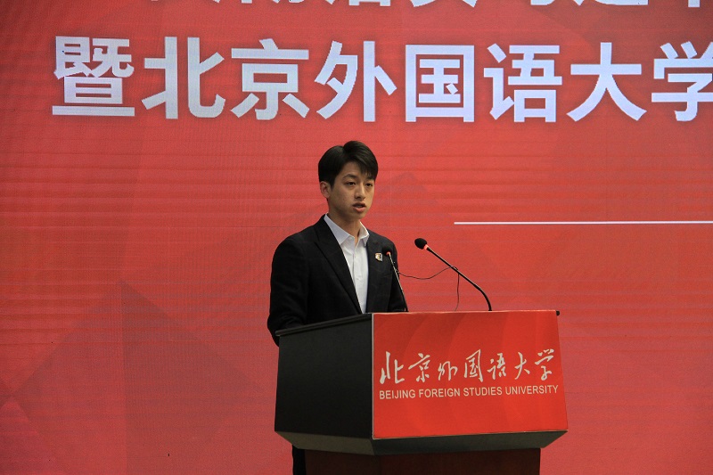 2021级硕士研究生贾云翔代表全体校庆工作优秀志愿者发言,他结合自身志愿服务经历和心得体会表达了身为北外学子的自豪,并表示将认真学习总书记回信内容,珍惜在参与校庆工作过程中收获的宝贵精神财富,只争朝夕不负韶华,早日成为有家国情怀、有全球视野、有专业本领的复合型人才。