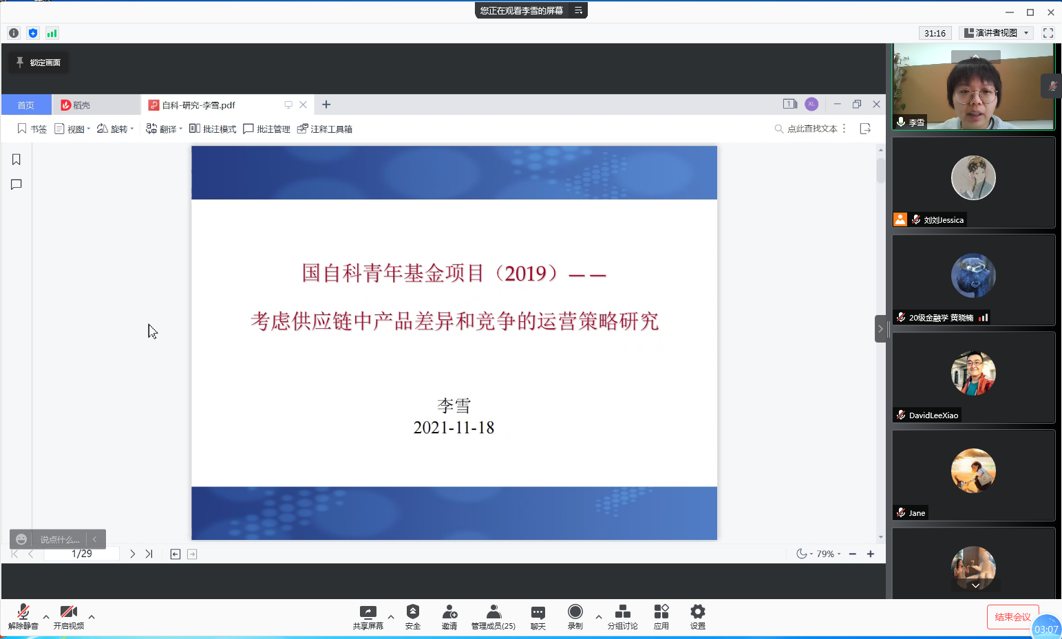 2021年11月18日,yl6809永利教师发展中心在线上举办本学期第八次教师活动,李雪和刘骏老师为大家分享了一场关于国家自然科学基金青年项目申请的经验交流讲座。