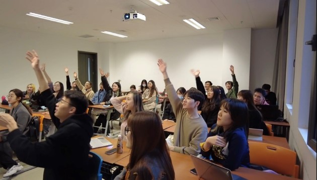 北京2022年冬奥会和冬残奥会期间,公司将派出800余名专业志愿者,涉及语言服务等6个专业志愿者项目组,是专业志愿者人数最多的高校。为致敬在志愿岗位上辛勤奉献的北外师生,彰显北外人独特的冬奥情怀,本支部在团日活动中纳入冬奥英语学习环节。本环节首先由支部书记对北京冬奥会项目及重要场馆的英文表达进行介绍,介绍完后进行学习成果检验。成果检验分为两种形式,形式一通过传递冬奥娃娃进行,每次倒数三秒后收到冬奥娃娃的同学需说出幻灯片上对应项目的英文表达,答对积一分,答错扣一分,并由其他同学举手抢答;形式二为检测题,以个人抢答的形式进行,题目展示出来后率先举手的同学进行作答,答对积2分,答错扣2分。