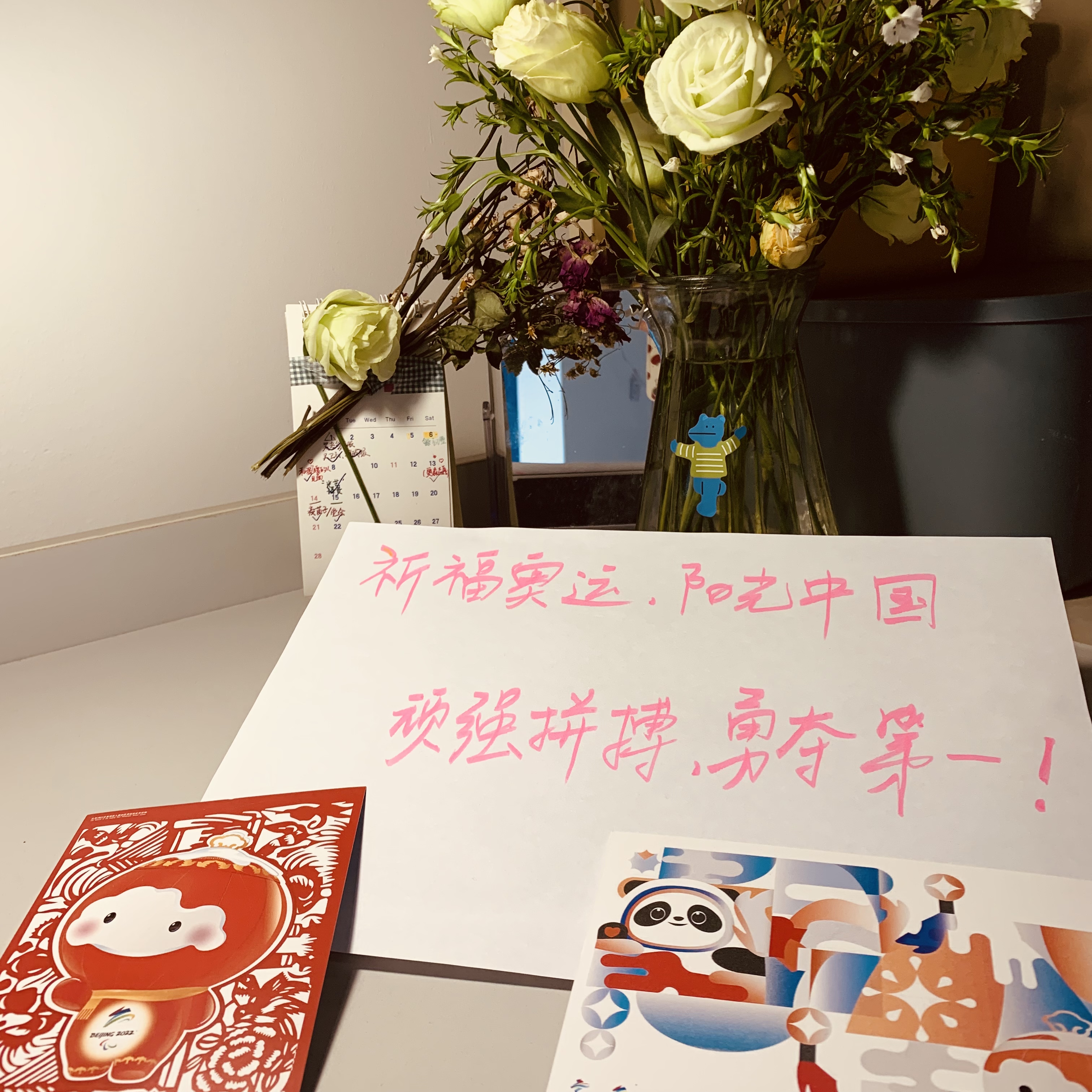 在知识竞赛活动结束之后,大家表示意犹未尽。在同学提议下,团支部又发起了“我为冬奥送祝福”手写祝福活动,大家自愿为冬奥手写祝福语。这项活动得到了支部成员的积极响应,大家以个人或宿舍为单位,通过绘画、书法、诗词等形式表达了对于2022年北京冬奥会的真挚祝愿。