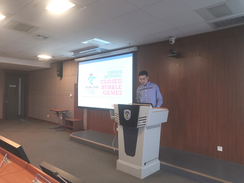 为使同学增强对本次冬奥会的了解与认识以及对奥运精神的弘扬传播,来自2021级外交学(国际经济)专业的闫栋炜同学精心准备了英语学习资料,从各个方面向同学们介绍了本次冬奥会的筹办情况和冬奥运动的魅力。闫栋炜同学首先介绍了2022年北京冬奥会的会徽、吉祥物、火炬等,详细地阐释了会徽各个元素蕴含的深刻内涵,并向同学们概述了本次冬奥会的运动项目,同时展示了运用在各个场馆中的高科技,并点赞了本届冬奥会中的北外力量。在展示的最后,闫栋炜同学表示,冬奥会应该是一个和平团结的全球大聚会,是展示中国形象的绝好机会。“长城脚下冬奥会”能彰显我们生态、文明、和谐、美丽的东方大国形象,更能给世界带来憧憬,消除西方的偏见,在体验中国文化的过程中享受冰雪运动的激情与快乐。各国应该以北京冬奥会为契机,尊重奥林匹克精神,践行“更团结”的奥林匹克格言,放下偏见,一起向未来。