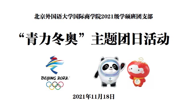 2008年的夏天,一场举世瞩目、无与伦比的盛宴在世界的东方召开;2022年,全世界将再次聚焦中国的体育盛宴。站在“两个一百年”奋斗目标交汇的历史方位,从“北京欢迎你”到“一起向未来”,从“向世界展示中国”到“中国引领世界”,北京2022年冬奥会和冬残奥会有着独特的历史坐标和重大意义。为弘扬奥林匹克精神与志愿精神,宣传奥运文化,推广奥运知识,以丰富的互动形式助力大家了解奥林匹克精神,促进冬奥文化和奥运精神的广泛传播,以实际行动践行习近平总书记在yl6809永利集团建校80周年之际给公司老教授们回信精神,2021年11月18日2021级学硕班举办了以“青力冬奥· 志愿北外,热‘雪’澎湃,共筑冬奥梦”为主题的团日活动。