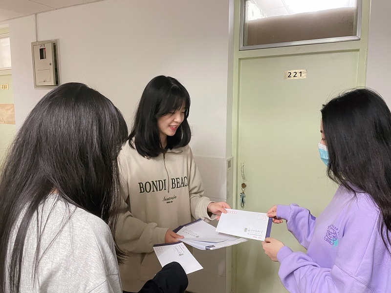 会议结束后,团总支负责同学把信封、信纸、结对卡和随信送给西藏同学们的小礼物——北外书签,分发到志愿者手中。