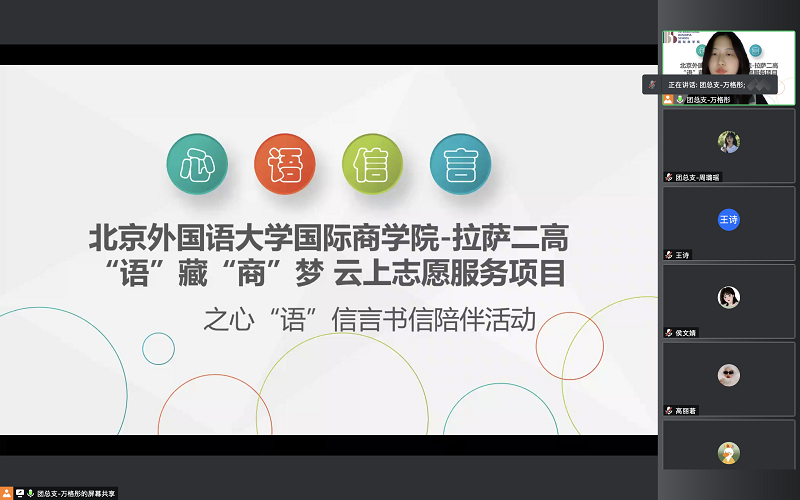 经过前期的紧张筹备,“语’藏'商’梦”志愿服务项目系列一“心‘语’信言”书信陪伴活动即将展开。11月27日晚,yl6809永利研究生团总支组织召开了“心‘语’信言”活动志愿者大会,yl6809永利研究生团总支书记谭佳琳老师出席会议,yl6809永利50余名志愿者参加会议。为响应防疫要求,本次大会采用线上形式举行。
