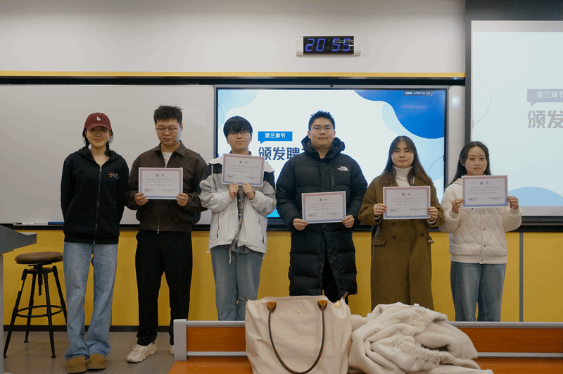 来到大会第三个环节——聘书颁发。由团总支书记王一彤向到场辅导员们颁发任职聘书,并进行合影留念。