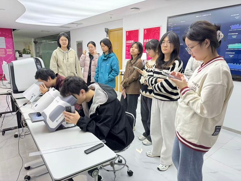 随后,师生们走进产品展区,实地操作眼底相机、抗压检测仪等设备,直观感受AI技术在医疗健康领域的落地应用与创新价值。