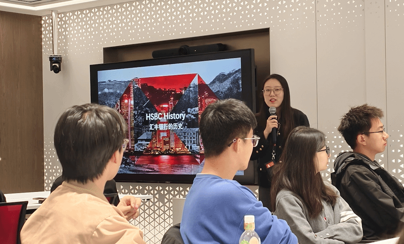 活动伊始,汇丰中国北京首家旗舰行相关负责人对师生们的到来表示热烈欢迎,并系统介绍了汇丰银行的发展历程与业务范围。汇丰银行创立于1865年3月,作为首批进入中国内地的外资银行之一,其在华业务涵盖多个领域,并在全球多个国家和地区设有分支机构。