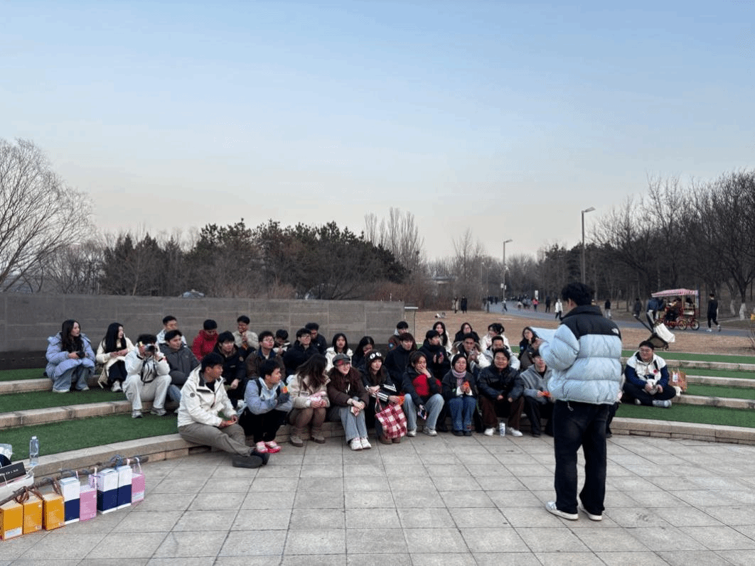破冰环节结束后,“组队寻宝” 主题活动正式启动。各小组依据活动指定路线,前往银杏林、仰山草坪、森林剧场等特色打卡点位,同步完成拍照记录与隐藏任务挑战。活动中,各小组充分展现了高效的分工协作能力:有人负责路线规划与导航,确保行进效率;有人专注搜寻打卡标识,精准完成任务;有人统筹协调团队节奏,保障行动统一。学子们在穿梭林间、漫步步道的过程中,既领略了冬日奥林匹克森林公园的自然景致,更在并肩协作中深化了信任、凝聚了合力,团队协作意识与解决问题能力得到显著提升。各小组及时将完成的打卡成果分享至活动专属群,在速度与创意的比拼中收获了满满的成就感与集体荣誉感。