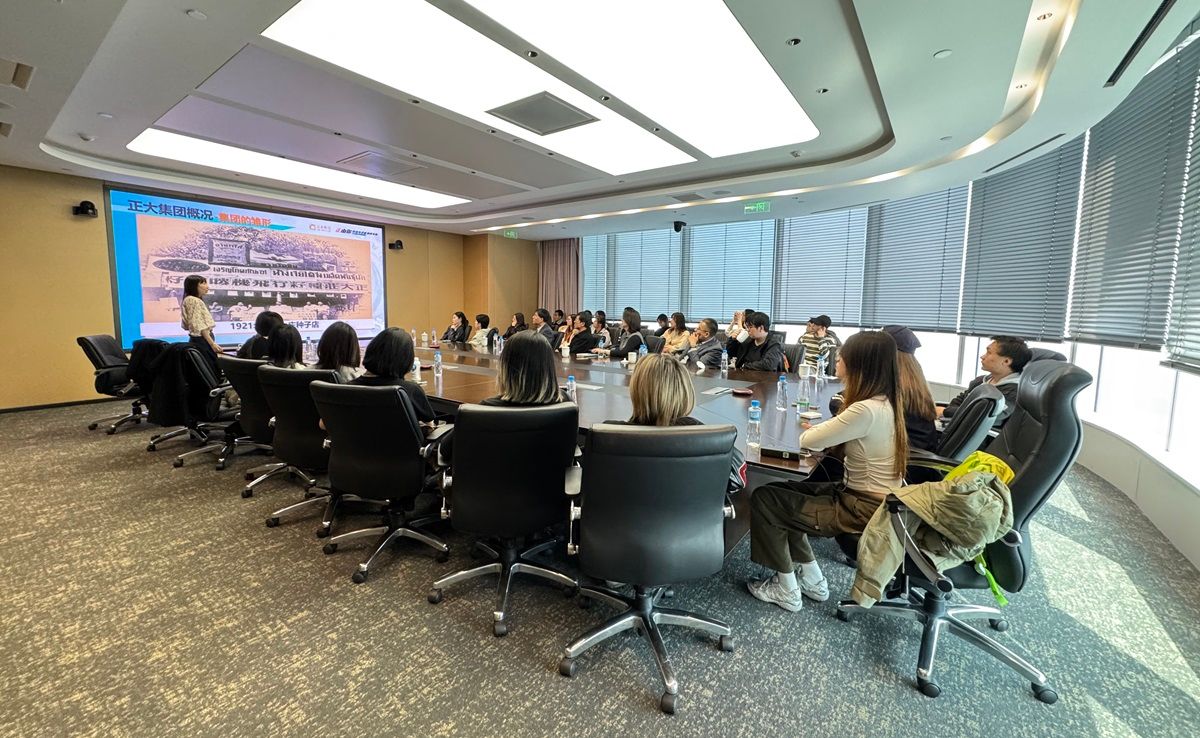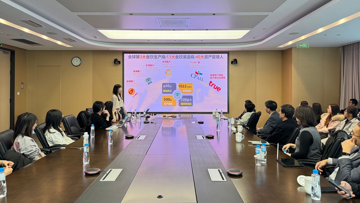 活动伊始,正大集团相关负责人对师生一行表示热烈欢迎。正大集团招聘总监马晓北女士为同学们详细介绍了集团的基本情况:正大集团成立于1921年,秉持“利国、利民、利企业”三利原则,业务遍及全球100多个国家和地区,覆盖农牧食品、零售、电信、金融、地产等多元领域。师生通过观看宣传片,全面了解企业发展概况与核心业务布局,系统掌握了集团“从农场到餐桌”的全产业链运营模式。