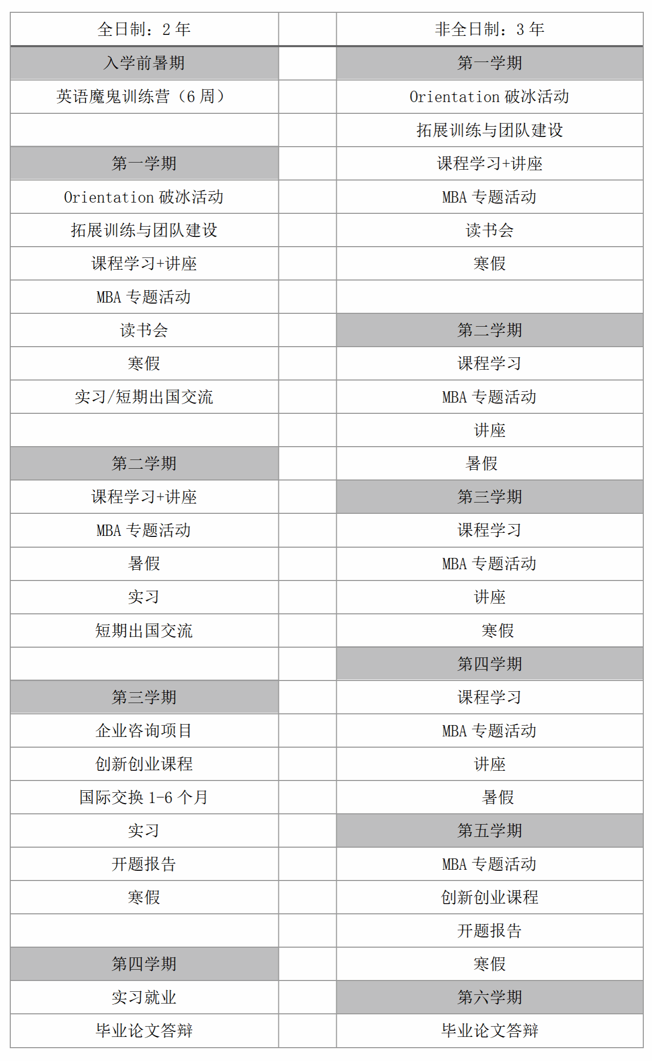 全日制MBA项目,2年制,学费共12.8万元人民币