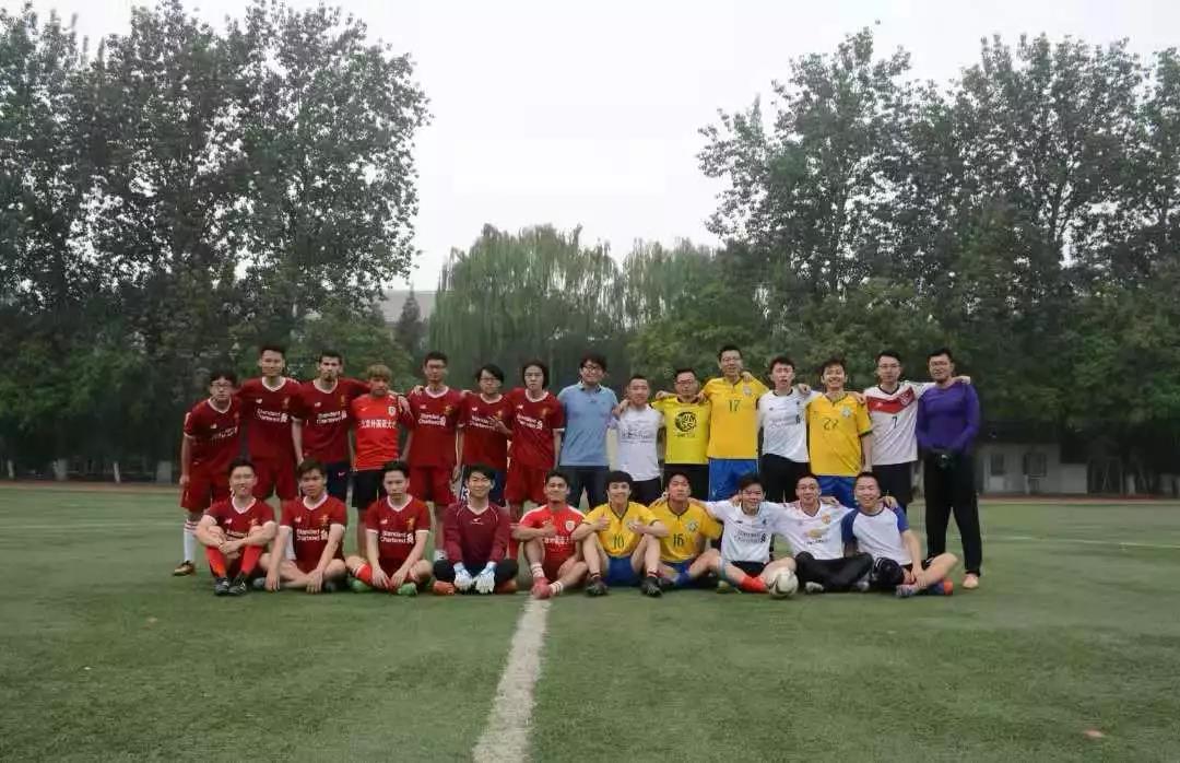 回北外踢球,元老队完胜现役队之后合影