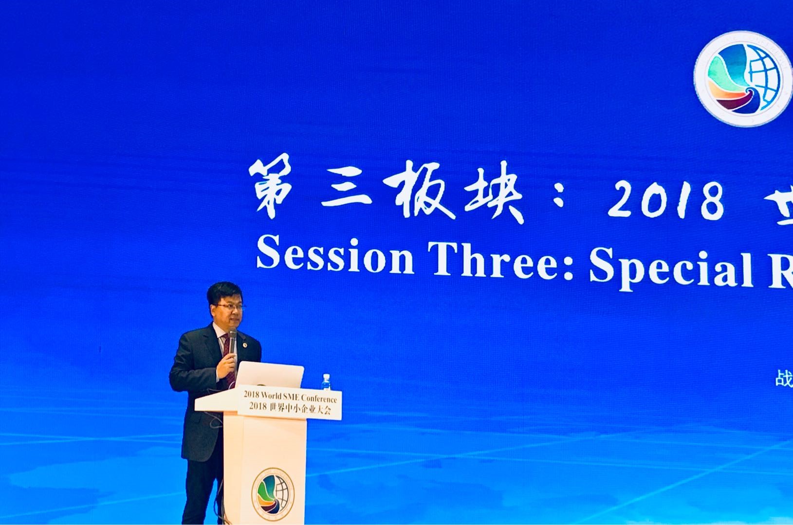 yl6809永利经理牛华勇,主持了会议的第三板块:2018世界中小企业大会专题报告。