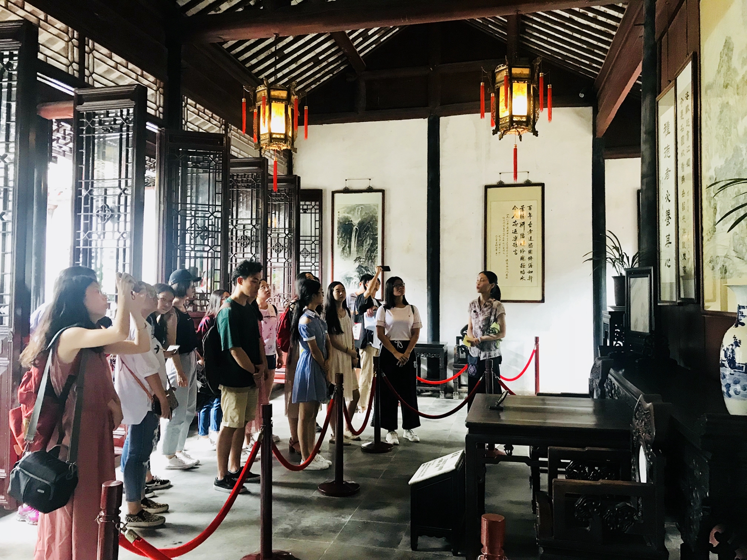 随后,到访师生在景区工作人员的带领下参观了同里古镇退思园及丽则女校,使同学们更深层次体验到同里旅游文化。